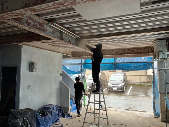時間の経過とともに錆が浮き出てしまったため、外壁を新しくリフォームするこの機会にH鋼部分もきれいに塗装し直します。