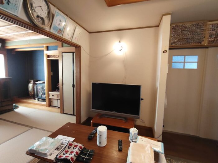 床の間の改修工事と合わせて隣のお部屋のテレビの後ろも内装工事をさせて頂きました。
