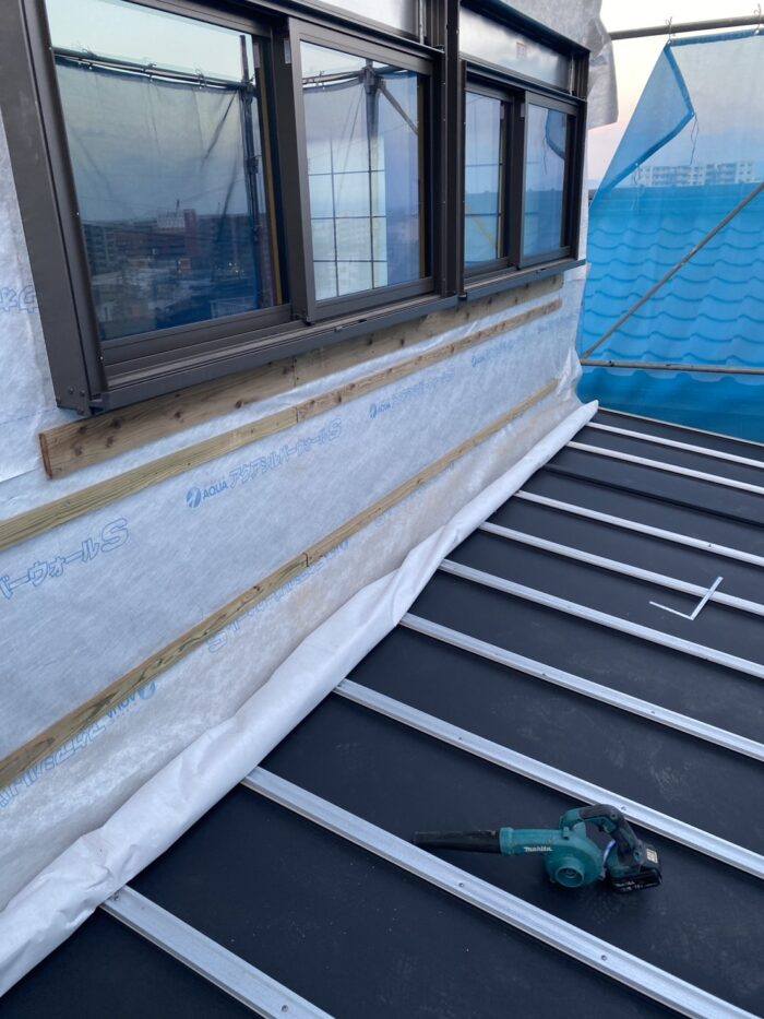 腐食している部分は補修を行い、大丈夫な上からはガルバリウム鋼板を設置しました。