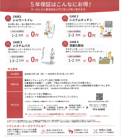 LIXILの※水回り商品を期間中にご成約頂いたお客様に保証期間延長のキャンペーンを開催致します。